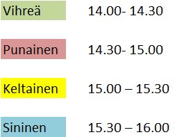 Ensimmäinen harjoitus, väriryhmien lähtöajat