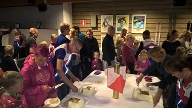 Lasten suunnistuskoulu päätettiin kakun syönnin ja mitalisateen merkeissä maanantaina 28.9.2015. Tapanilan hiihtomaja oli ääriään myöten täynnä suunnnistuskoululaisia ja heidän huoltajiaan nauttimassa kauden viimeisesta tapahtumasta. Nastarit oli laitettu jo naulaan ja tällä kertaa vain nautiskeltiin. Tarjolla oli herkkuja ja aktiivisimmat koululaiset palkittiin pokaalein ja mitalein. Palkinnot suunnistuskoululaisille jakoi kannustavin sanoin Minna Kauppi. Koulu on on siis tältä kaudelta ohi, mutta talven salivuorot ovat jo alkamassa, kuten sivuilla on aikaisemmin mainostettu. Kiitokset kaudesta ja tervetuloa mukaan talven ohjelmaan.