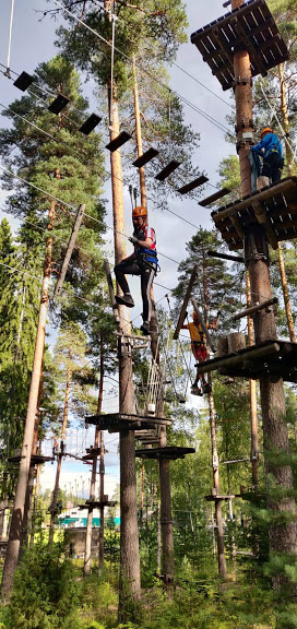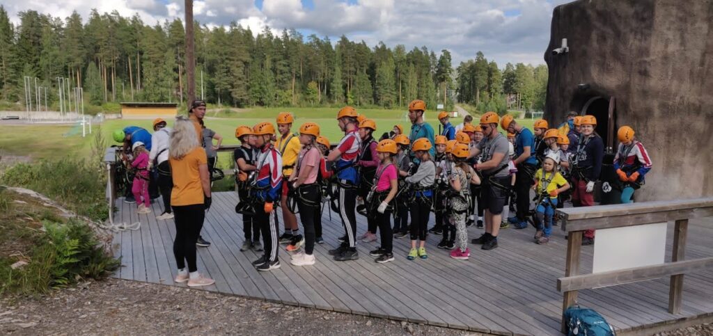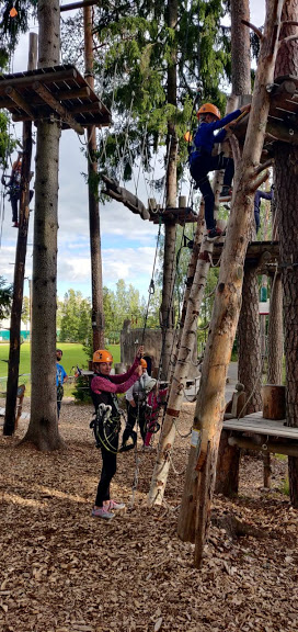 Päivän päätteeksi suurin osa jaksoi vielä kiivetä yläilmoihin seikkailupuiston radoille. Lasten suusta kuultua: ”Oli tosi kiva leiripäivä”, Lisää näitä!”. Myös vanhemmilta tuli kiitosta hyvin suunnitellusta ja organisoidusta päivästä. Suuri kiitos siis leiripäivän ohjaajille: Anu, Jarno, Katja, Joel, Kirsi ja Petri!