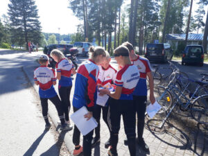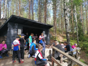 Pajulahden runsaan buffetpöydän anneista nauttineina suuntasimme iltapäivällä karttavaellukselle. Pienryhmissä käveltiin karttaan merkittyjen rastien kautta ja ryhmässä pohdittin välillä melko kinkkisiäkin tehtäviä. Maali odotti Seelammin laavulla, jossa Joel oli näppärästi laittanut jo tulet nuotioon 🙂 Makkaran paiston ja muiden eväiden lomassa, käytiin läpi rastitehtävät ja palkittiin kaikki hienoista suorituksista.