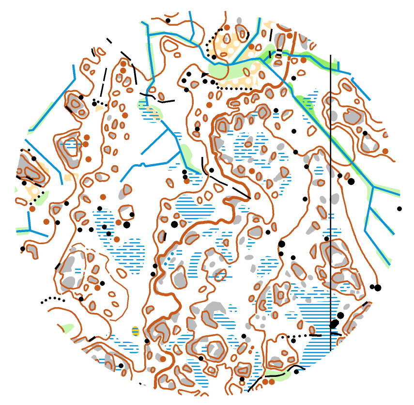 Vuoden 2020 SM-viestin naapurimaasto. Hienoa suo-kalliomaastoa, mutta sopivasti myös peitteisiä paikkoja. Timanttihajonnallinen rata 7,5 km / 4,8 km.
