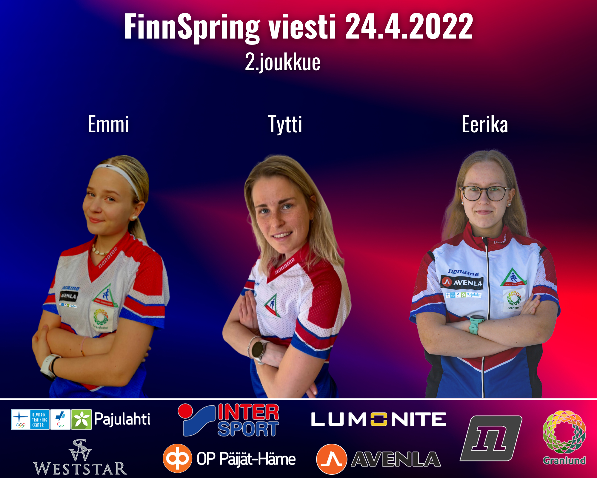 Naiset lähtevät parantamaan Kevätyön viestin 9.sijaa seuraavilla kokoonpanoilla: