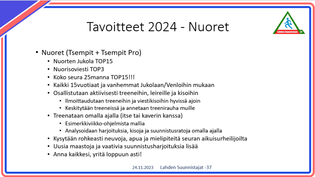 Vuoden 2024 seuran nuorten ryhmien kokonaisuudet koottu vertailun vuoksi PDF muotoon: LS-37 Nuorten ryhmät 2024