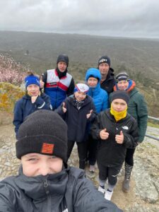 Dia 3 Heräsimme kylmään ja sateiseen aamuun. Tänään oli vuorossa pitkä matka ja lähdöt olivat kahdentoista aikoihin, joten ehdimme syödä Eerikin voittokakun. Tämä antoi kaikille voimaa pitkälle matkalle. Ennen kun menimme kisakeskukseen, menimme pieneen kylään nimeltä Castello Pom. Totesimme että kylä soveltuisi hyvin keskiaikaiseen elokuvaan, jossa seikkailisi jedisotureita valomiekkoineen. Kun saavuimme kisakeskukseen, satoi ja oli mutaista. Kun juoksimme lähtöalueelle, tuli kamala rankkasade juuri ennen lähtöjä. Joku siitä sitten sai idean, että mennään tonne puun alle kaikki, niin kuin pingviinit. Onneksi sade hellitti, kun kaikki lähtivät maastoon. Aikuisilla ja Rikulla kiertivät radat hienoilla ja jyrkillä kallioilla, joista näki myös hienot maisemat. Nuorempien radat eivät kiertäneet kallioilla, mutta heille kaikille tuli hyvät sijoitukset. Myös aikuisilla meni hyvin, Koikka voitti, joka tarkoitti lisää kakkua! Koikan menestystä säesti Uman, Sallan ja Tomin toinen ja Eerikin kolmas sija. Kisan jälkeen matka jatkui läheiseen Guardan kaupunkiin, jossa oltiin niin korkealla että oltiin jo pilvessä. Guardassa kävimme keskiaikaisessa kirkossa ja kauppakeskuksessa. Illalla katsoimme presidentinvaaleja ja syötiin eilisen iltakisan Uman voittokinuskikakkua.