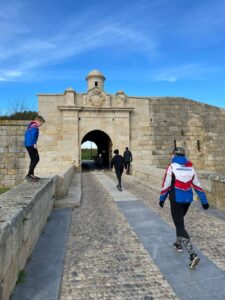 Dia 1 Heräsimme sateiseen ja kylmään ilmaan Portossa. Söimme runsaan aamupalan hotellilla, jonka jälkeen lähdimme kiertelemään kaupunkia. Kävelimme ensin vanhalle kirkolle, josta saimme nähdä hienot maisemat. Kirkolta kävelimme suurelle ja korkealle sillalle, josta näki myös huimat näköalat (Koikkaa valitettavasti pelotti liikaa eikä hän nähnyt hienoja näköaloja). Sillan jälkeen kävelimme Porton yhden juna-aseman läpi, josta palasimme hotellille. Pian hotellille saapumisen jälkeen lähdimme kohti Aldeiaa. Ennen lähtöä Uma ja Ella saivat idean käydä Atlantissa uimassa, ja kun saavuimme Atlantin rannoille Uma ja Ella säntäsivät myrskyisää merta kohti (tuulen nopeus oli noin 13m/s). Eerikkiä ja Rikua houkutteli meri myös, ja lopulta Eerikki ja Riku eivät voineet jäädä tyttöjä huonommaksi ja päättivät myös käydä uimassa. Uimareissun ja vaatteiden vaihdon jälkeen matka jatkoi kohti Almeidaa. Matka tulisi olemaan noin 2 tuntia. Noin matkan puolivälissä käytiin syömässä pienellä huoltoasemalla ja vessatauolla. Tauon jälkeen matka jatkui hienoissa maisemissa. Noin tunnin ajomatkan jälkeen saavuimme Espanjan rajalle Vilar Formosoon, johon jätimme Ellan isän, joka matkaisi Lissaboniin. Muiden matka jatkui kohti Almeidaa, jossa oli järjestetty harjoitussuunnistus. Harjoitussuunnistuksen jälkeen matka jatkui kaupan kautta majoitukseen. Majoitus oli kaksi pientä bungalowta, jossa oli kaksi vessaa, keittiö ja neljä sänkyä. Päätimme päivän hyvän yön uniin.
