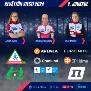 Perinteinen Kevätyön viesti lyö ensi tahdit Viestiliigakaudelle. Sini-puna-valkonutut iskevät Lumoniten valot roihuten Paraisten Finbyn maastoissa kolmella naisten (D21) pääsarjatiimillä ja kahdella miesten (H21) tiimillä. HD16-sarjassa nähdään upeasti myös kolme joukkuettamme.
