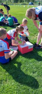 Lahden suunnistajilla oli myös leirikioski, jossa nuoret auttoivat myynnissä aina välillä. Kiskan tuotot menevät Lahden suunnistajien nuorten hyväksi.