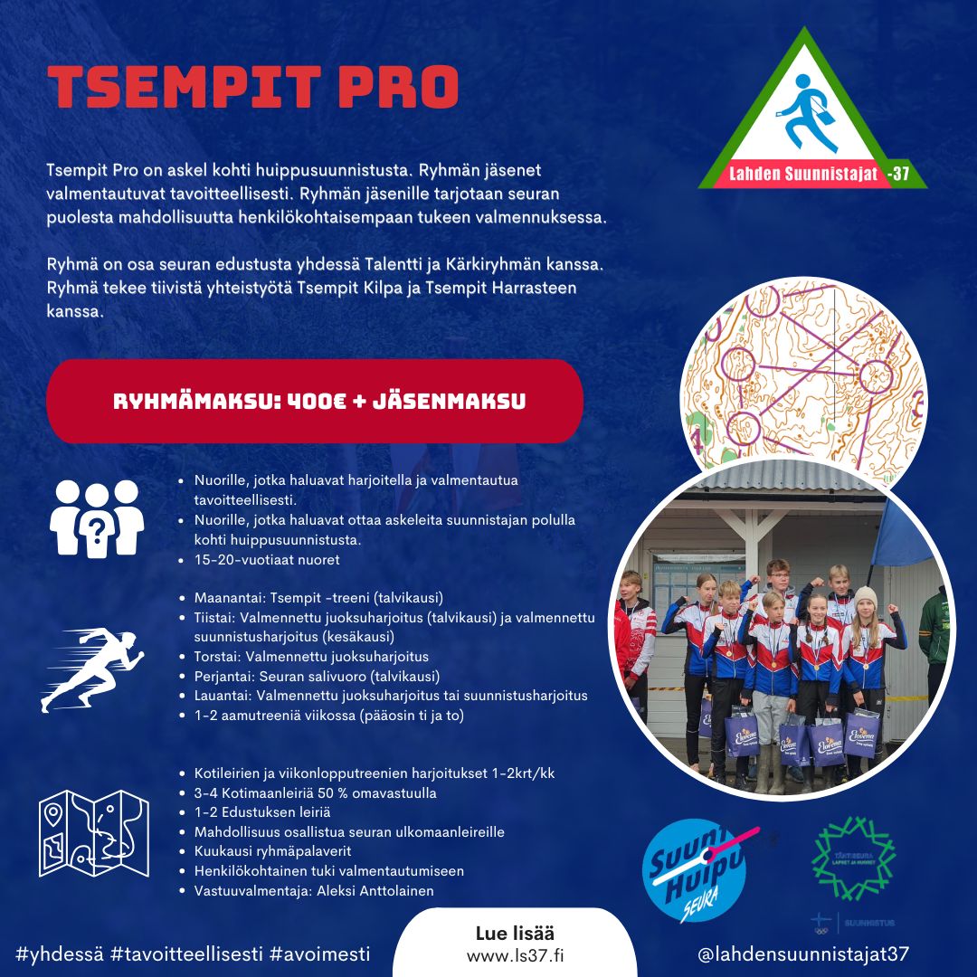 Tsempit Pro on askel kohti huippusuunnistusta. Ryhmän jäsenet valmentautuvat tavoitteellisesti. Ryhmän jäsenille tarjotaan seuran puolesta mahdollisuutta henkilökohtaisempaan tukeen valmennuksessa. Ryhmä tekee yhteistyötä niin nuorempien kuin myös seuran edustusurheilijoiden kanssa.