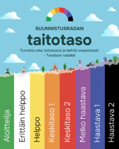 Ratamestareita varten taitotasot ja värikoodien käyttö on ohjeistettu tarkemmin iltarastiemme ratamestariohjeessa.