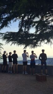 Ihana ja aurinkoinen perjantai päivä alkoi tuttuun tapaan Rasmuksen aamulenkillä. Muut nukkuivat makeasti ja heräilivät reippaampien saapuessa takaisin majoitukseen. Kun aamupalat oli syöty ja palaverit pidetty, suunnattiin nokat kohti vuoria ja pitkää parisuunnistusta. Treenin tarkoituksena oli tehdä vähintään 2 tuntia kestävä todella kevyt suunnistus. Allu oli laittanut treeniin haasteeksi edetä noin 1km pituinen 10-11 rastiväli mahdollisimman suoraan rastiväliviivaa pitkin. Nousua tälle välille kertyi reilu 200 metriä. Rastiväliin suhtauduttiin vakavasti ja antaumuksella, koska Allu oli luvannut voittajille kokikset. Top-3 sijoitukset jakautuivat seuraavasti: 1. Oliver 2. Linda ja Ella 3. Riku. Pisimmän ajan tällä rastivälillä viettivät Linda ja Ella, joiden vauhti oli päätä huimaavat 40min/km. Illan treeninä oli seuraavan päivän viestitreenin mallisuunnistus. Treeni sujui pääosin letkajenkkana Hermannin ja Aatun vetäessä. Parkkipaikalla kohtasimme Itävaltalaisia suunnistajia, joista osa oli hieman sekaisin. Matkoilla treeneihin teimme palveluksen Karon Spotify wrapped -listalle kuunnellen äänet täysillä Tippon herkkää ja koskettavaa musiikkia. Illalla osa lähti vielä kävelylenkille Italian puolelle. Ella, Linda ja Hermanni antoivat vahvat näytöt tanssitaidoistaan Tiktok videolle. Tutustuimme myös noin 8-vuotiaaseen poikaan, joka osasi laskea skeittilaudalla portaita.