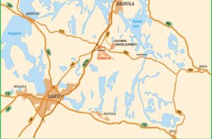 Opastus tieltä 140, seututien 363 risteyksestä, joista ajoaika kilpailukeskukseen n. 5 min. Opasteet ovat paikoillaan ...