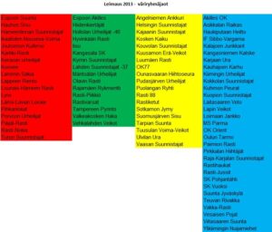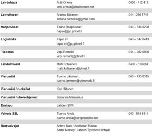 Osallistujalista Leirilehti Leirikilpailun tulokset Kartoituskurssin kurssiohje Väriryhmäjaot Väriryhmien uimahallivuorot