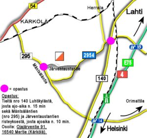 Lahti-Suunnistus 2014 ajo-ohje Lahdesta etäisyys n. 30 km.Kilpailukeskuksen osoite: Ojajärventie 91, 16540 Mertie (Kärkölä). Kilpailukeskuksessa ...