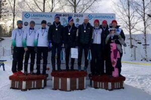 Hiihtosuunnistuksen SM-viesti kultaa Lahdensuunnistajat-37 sarjassa H130. Voittajajoukkueessa; Ruutiainen Tomi, Kiljunen Juha ja Kiiskinen Petri?. Kuva: ...