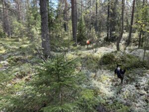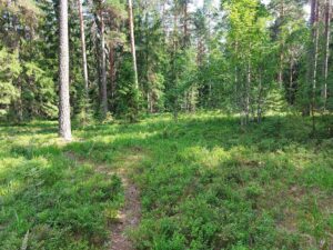 Maasto on hyväkulkuista mutta sekaan mahtuu myös hakkuun jälkeen kasvanutta tiheikköä. Polkuja on kartalla vähän, ...