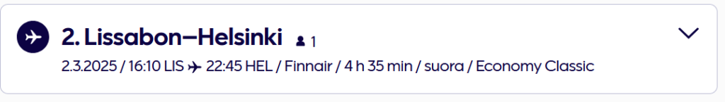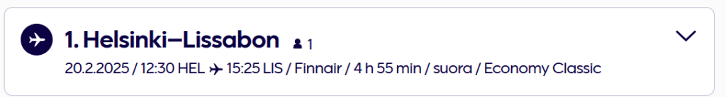 - klo 12.30-15.30 Lento Helsinki – Lissabon