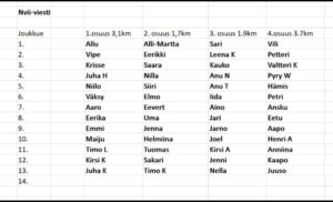 Tarkista oma joukkueesi alla olevasta lähtölistasta! Muutoksia tulee vielä ja loput tehdään ennen viestin starttia!